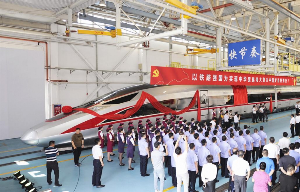 2015年6月,中國(guó)標(biāo)準(zhǔn)動(dòng)車組樣車下線。2016年7月,兩列中國(guó)標(biāo)準(zhǔn)動(dòng)車組在鄭徐客運(yùn)專線上進(jìn)行了時(shí)速420公里交會(huì)試驗(yàn),完成世界上首次在實(shí)際運(yùn)行軌道上進(jìn)行的高速列車會(huì)車試驗(yàn)。2017年6月,中國(guó)標(biāo)準(zhǔn)動(dòng)車組被正式命名為“復(fù)興號(hào)”,同年9月,“復(fù)興號(hào)”在京滬高鐵實(shí)現(xiàn)時(shí)速350公里商業(yè)運(yùn)營(yíng),為世界高速鐵路商業(yè)運(yùn)營(yíng)樹立了新的標(biāo)桿。